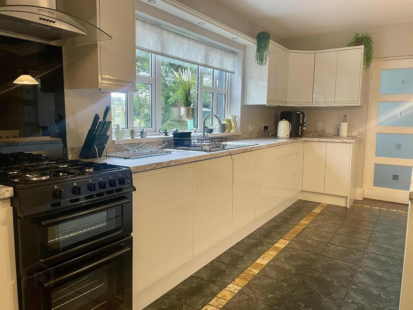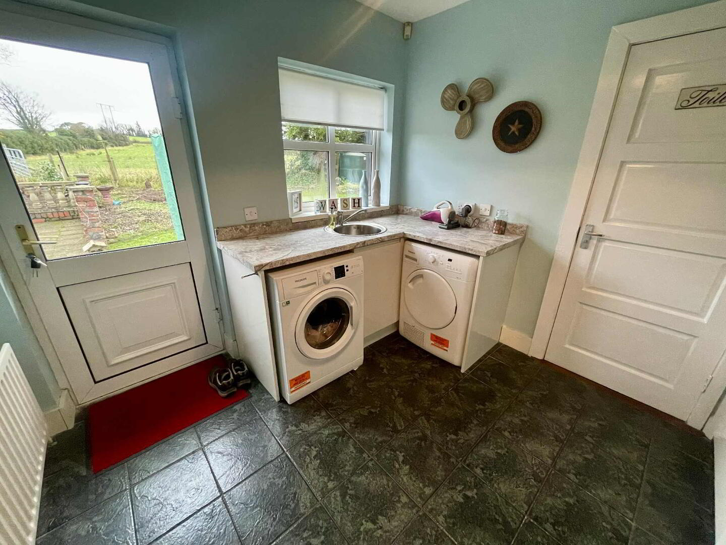 Tiled floor, high & low level units with worktop, stainless steel sink, space for washing machine, tumble dryer and fridge, access to garage and bathroom.