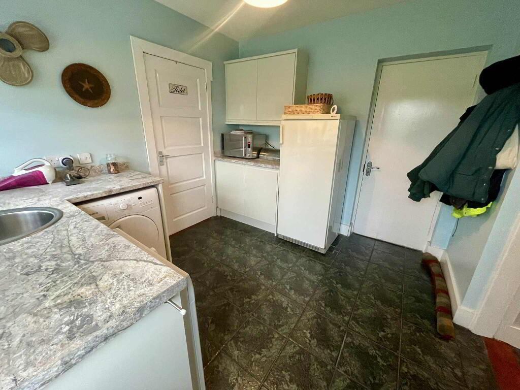 Tiled floor, high & low level units with worktop, stainless steel sink, space for washing machine, tumble dryer and fridge, access to garage and bathroom.