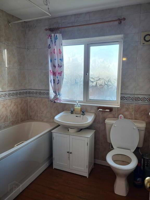 Property consists of hallway, under stairs storage, reception room, kitchen/dining, upstairs: three bedrooms, bathroom and hot press.